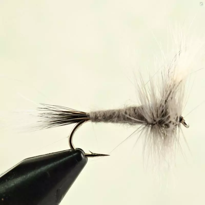 Mayfly Gray Wulff imitates adult mayflies. It has a bushy hackle which floats the fly high. Best time for fishing is early summer when mayflies are swarming. Suitable for grayling and brown & rainbow trout.