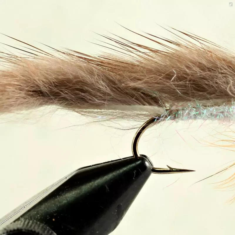 Minkie is a trout streamer with soft materials. It imitates well trout’s common baitfish species. Orange hackle is tied for extra attraction. Works both in lake and river fishing.