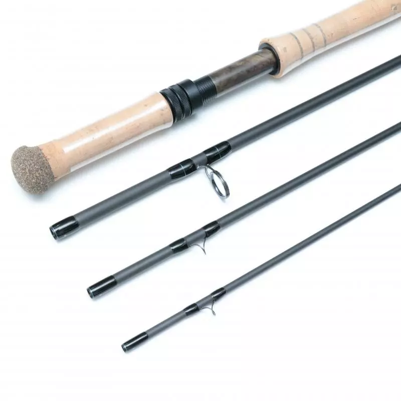| Pure Skagit | 9 WT | 12′ 3″ | 4 pieces | Full-wells | Medium/Fast | Matte Black with Blue Accent Wraps |