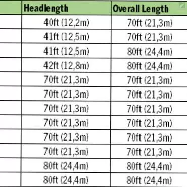 | Line Size | 30ft Head Weight | Total Head Weight | Head Length | Total Length |