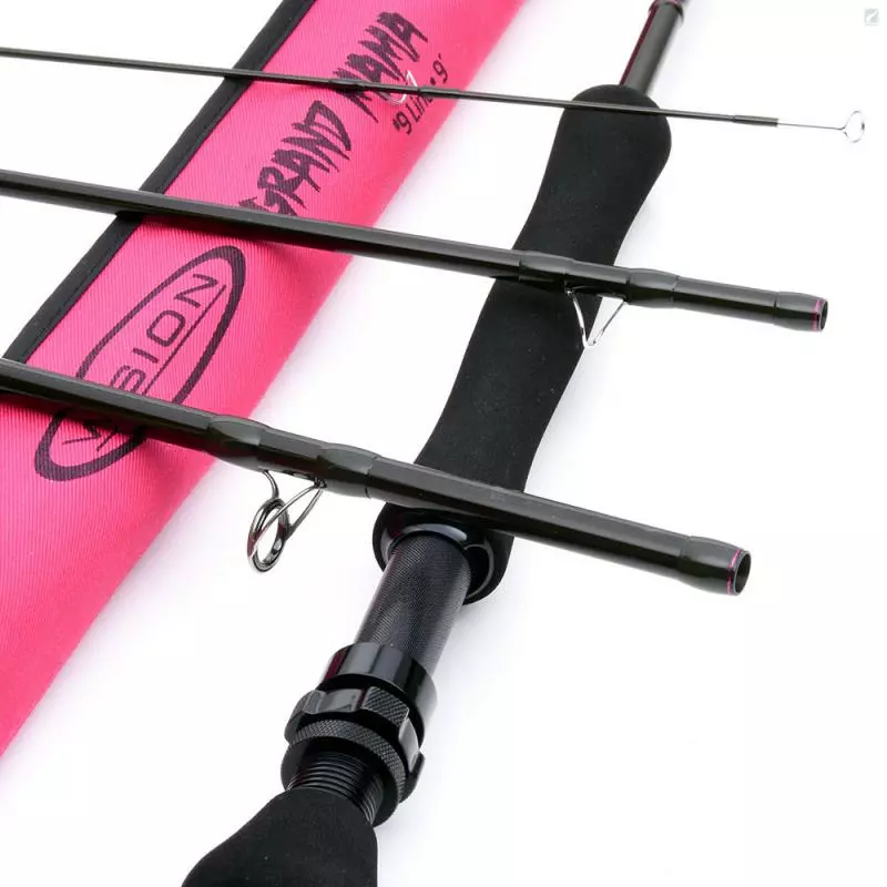 Vision Grand Mama – this rod rocks and has some serious attitude. It is a fast action rod series designed for fishing big predatory fish. Vision added high quality and durable EVA full wells handle and fighting butt because these rods will be used in super harsh conditions on the Baltic sea and big lakes . The titanium stripping guides ensure there will not be any problems with corrosion even in saltwater. Vision added a bit of funk to the dark olive blank with the pink details. Anglers can measure even the biggest catches easily as the fish ruler on the blank goes all the way to 130 cm. This series of rods is perfect for big flies on big water in big winds.